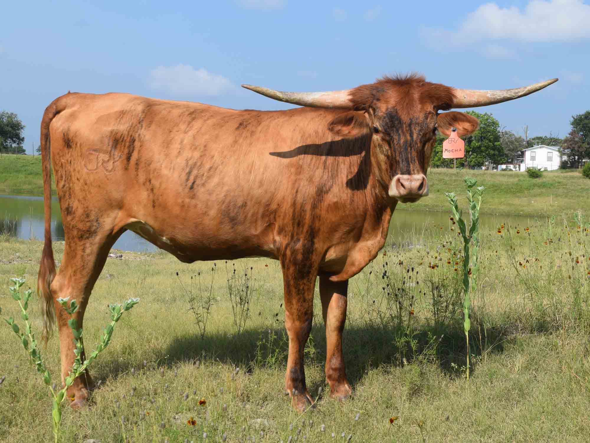 Description of BRR Bella Mocha: Mocha has been one of our favorite heifers out of one of our favorite herds. She is a big, strong cow with great brindle and a lot of horn. Her dam is one of the best producers at the great Bella Rio Ranch.