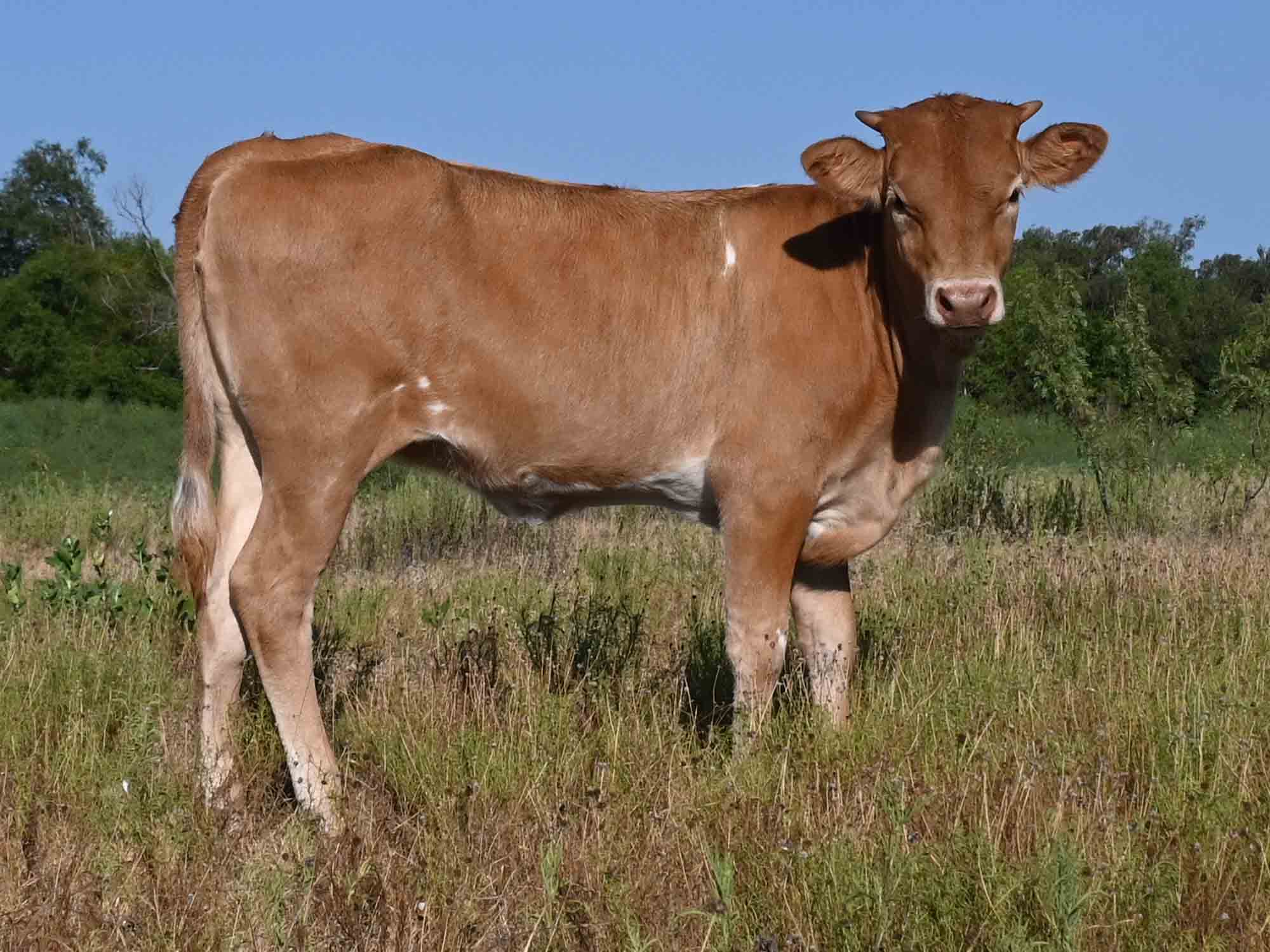 Description of LM Miss Llano Sissie: Here is a gorgeous young brindle cow with a maternal pedigree at the heart of El Coyote Ranch in south Texas.