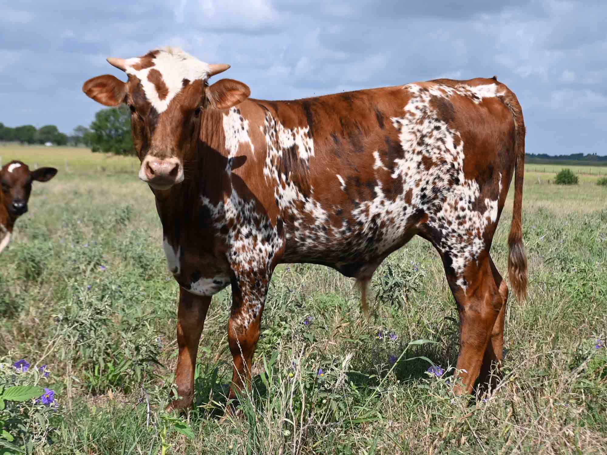 Description of Thunder Creek: What a beautiful bull! We have loved his color since he was born, but it became even better as he brindled with age. His body is just terrfic. He has thickness from his sire and great length from his maternal line. His horns are coming on strong too. He's just a very striking young bull!