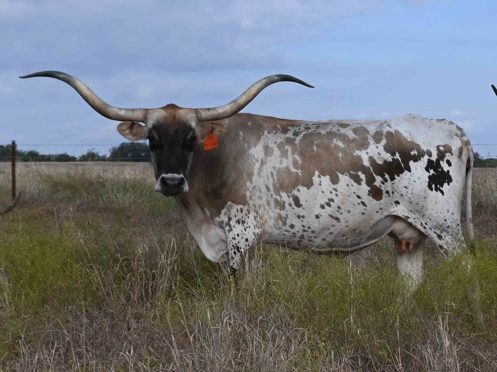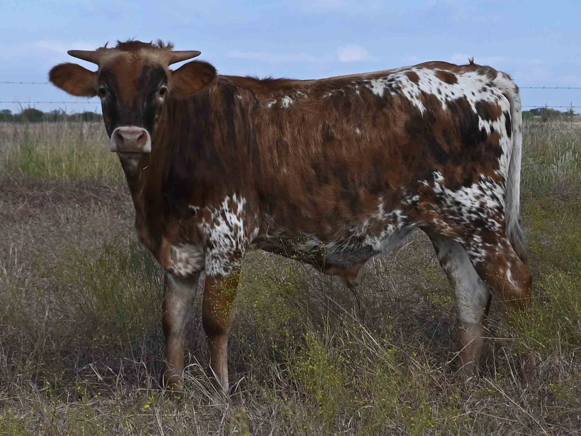 Description of V Bar Terlingua: What a cool cow! Terlingua's color and horn shape set her apart. We are really excited to add her to our herd and thankful to our friends at Bella Rio for selling her to us!