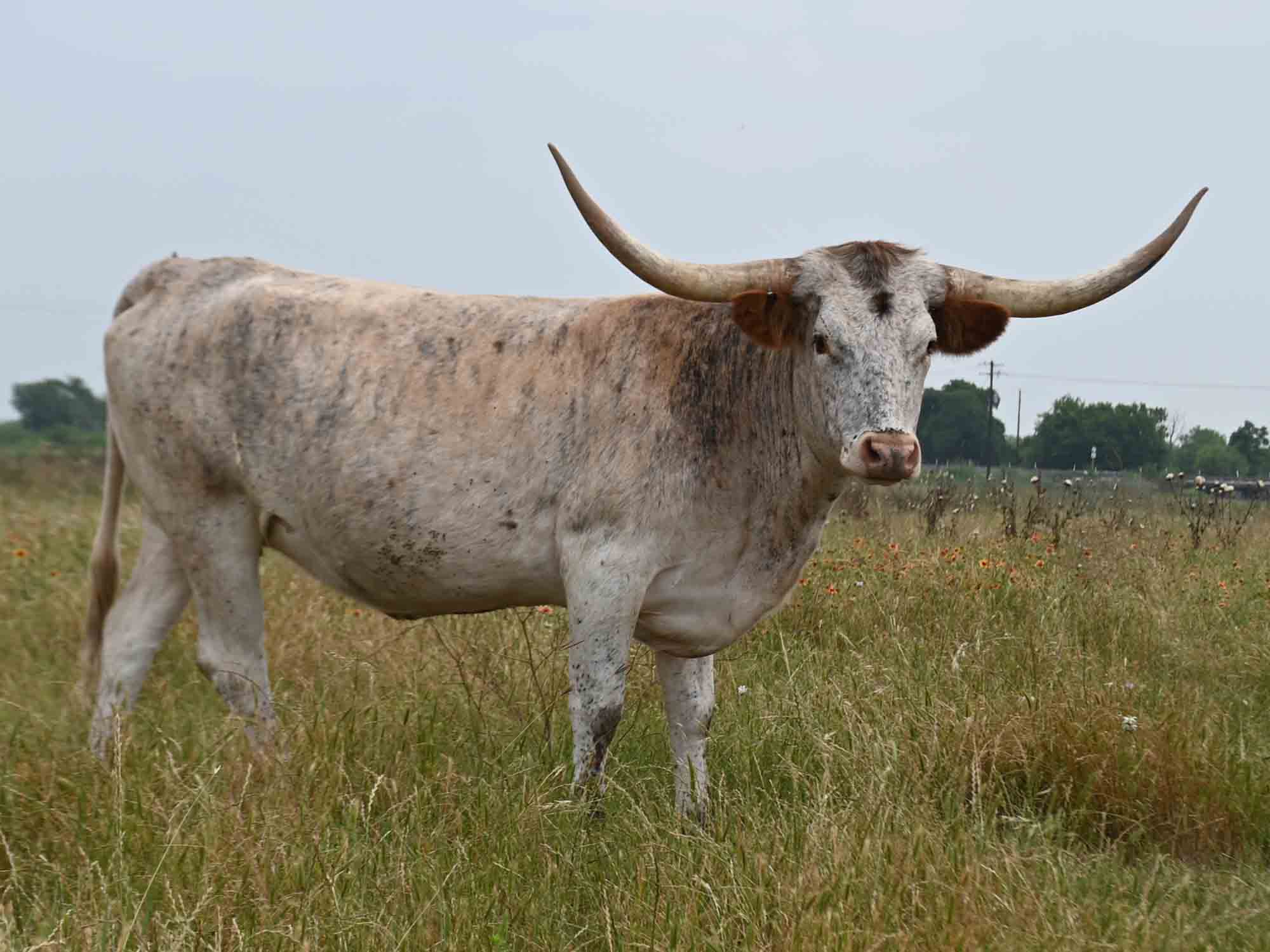 Description of RO High Fashion: High Fashion combines the huge horn potential of Magnum with the huge body of her beautiful dam. Not only that, but she is developing a magnificent tri-color roan at 15 months of age. She is going to be very nice!