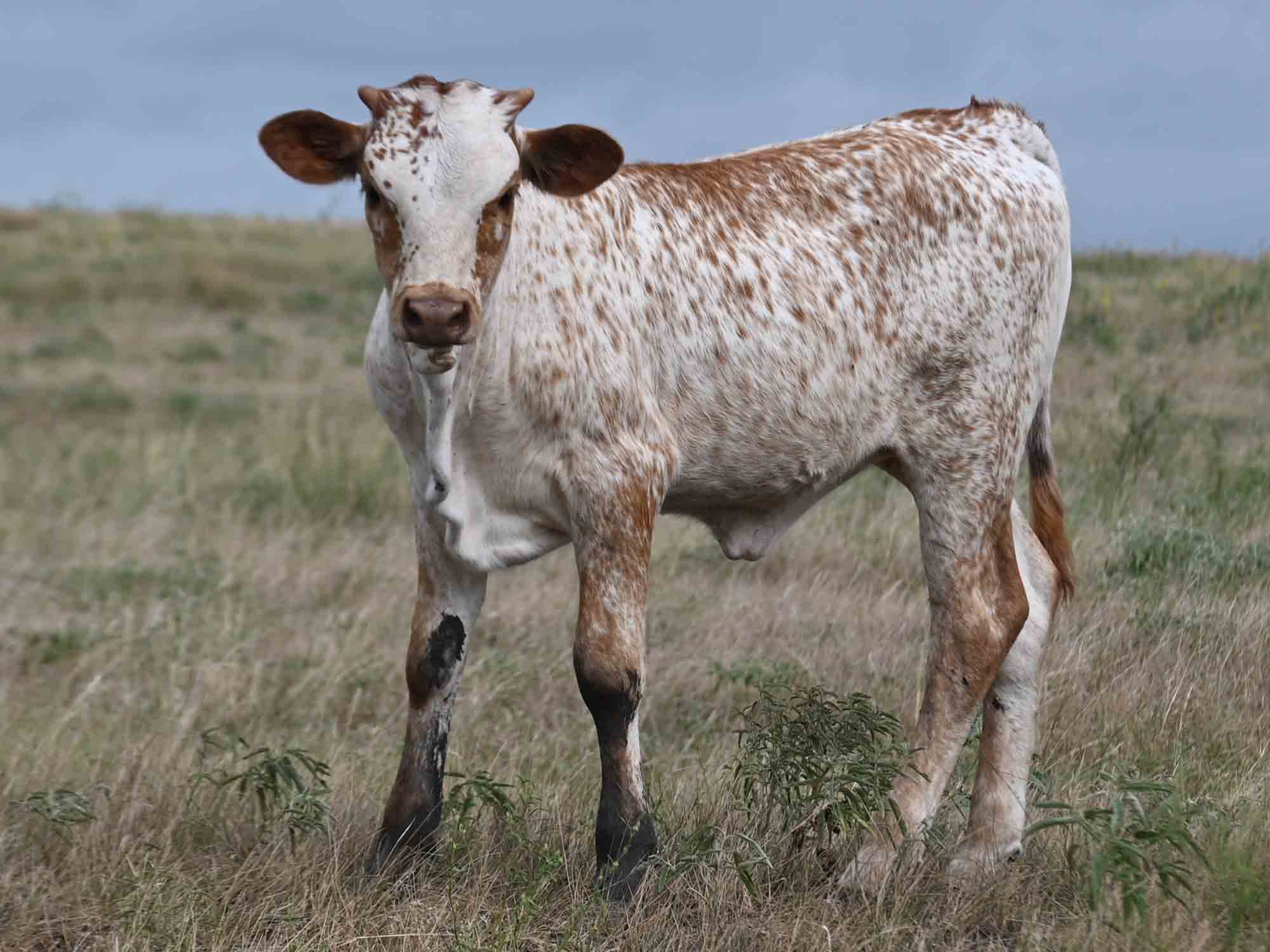 Description of RO Painted Fly: Painted Fly is the first calf by our exciting young herd sire Painted Prince. If she gets his brindle, she will really be something!