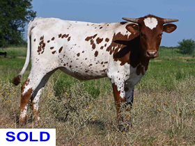 Description of RO Queen Of Hearts: Queen Of Hearts is the second heifer by our big horned young bull Prince Harry. Her maternal line is excellent and traces back to India, the queen of our mentor Bob Coffee's Travis Peak herd. Thank you Gary!