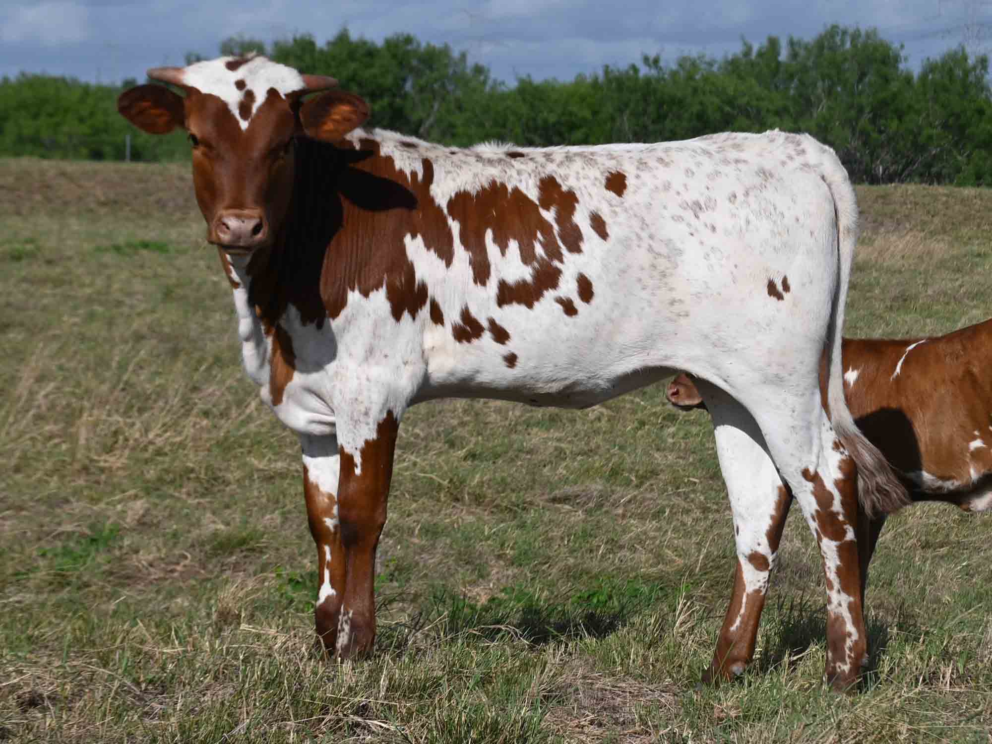 Description of RO Scrambled Up: Scrambled Up is a well-built heifer that is likely to have some roll to her horns as she matures.