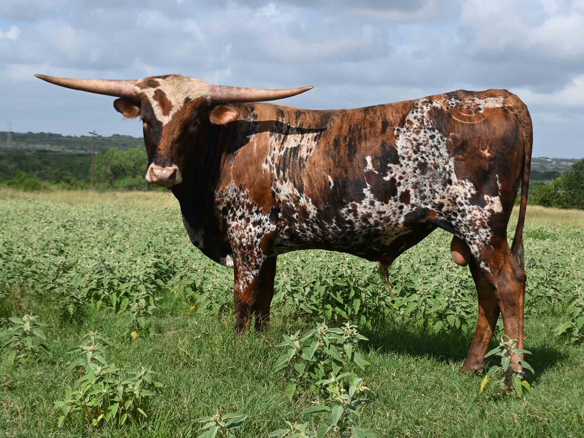 Description of Thunder Creek: What a beautiful bull! We have loved his color since he was born, but it became even better as he brindled with age. His body is just terrfic. He has thickness from his sire and great length from his maternal line. His horns are coming on strong too. He's just a very striking young bull!