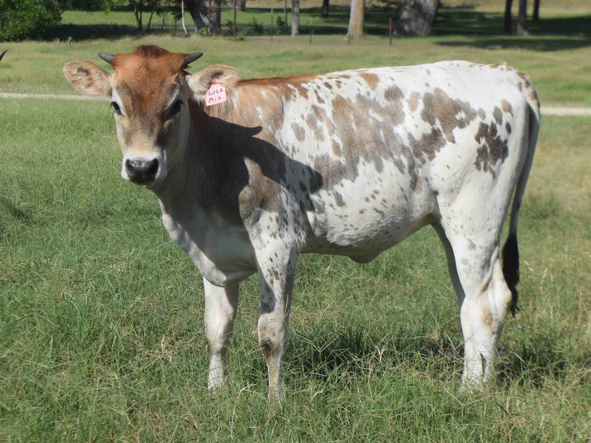 Description of V Bar Terlingua: What a cool cow! Terlingua's color and horn shape set her apart. We are really excited to add her to our herd and thankful to our friends at Bella Rio for selling her to us!